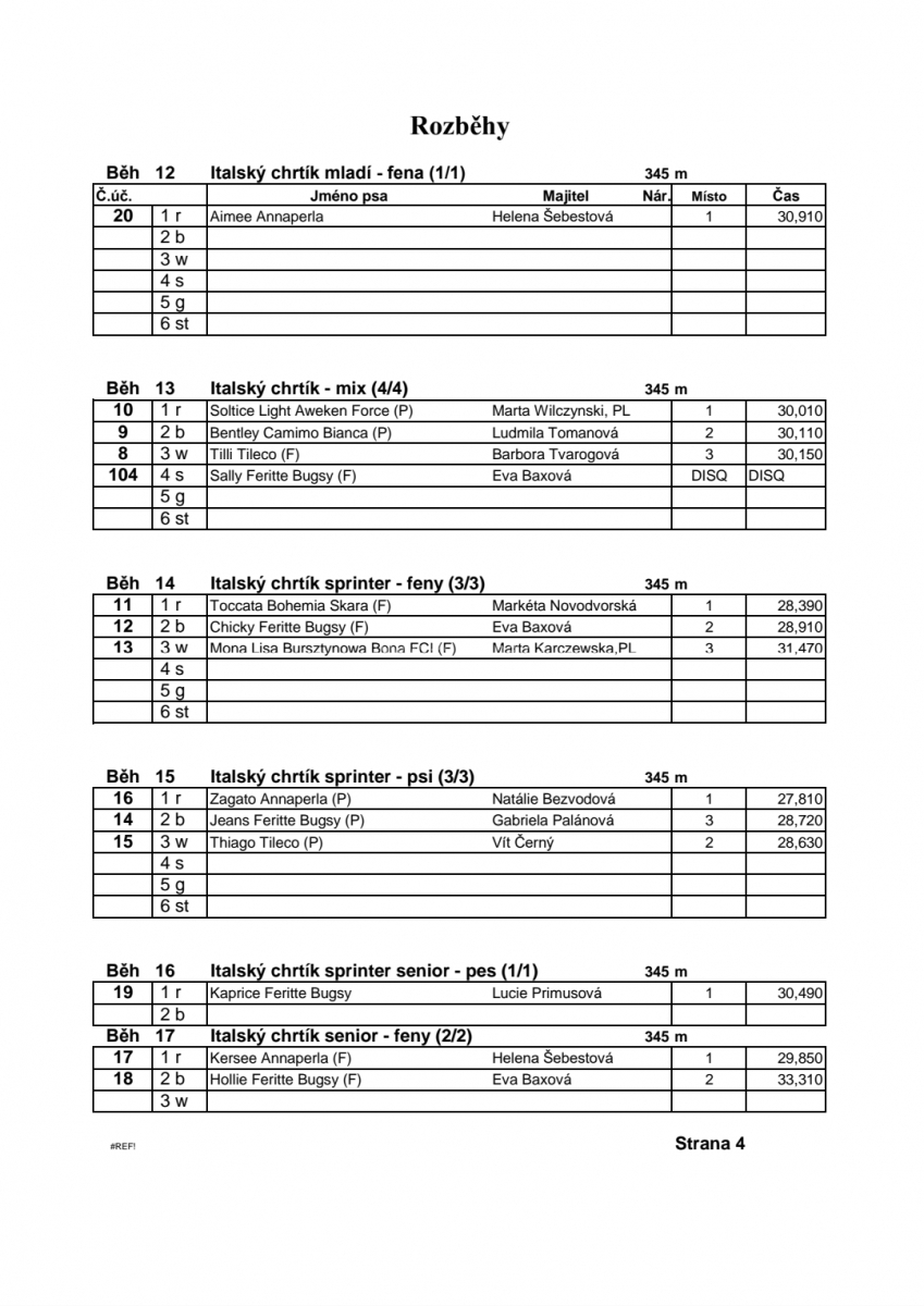 Dostihy chrtů – rozpisy běhů, časy rozběhů a finálových běhů