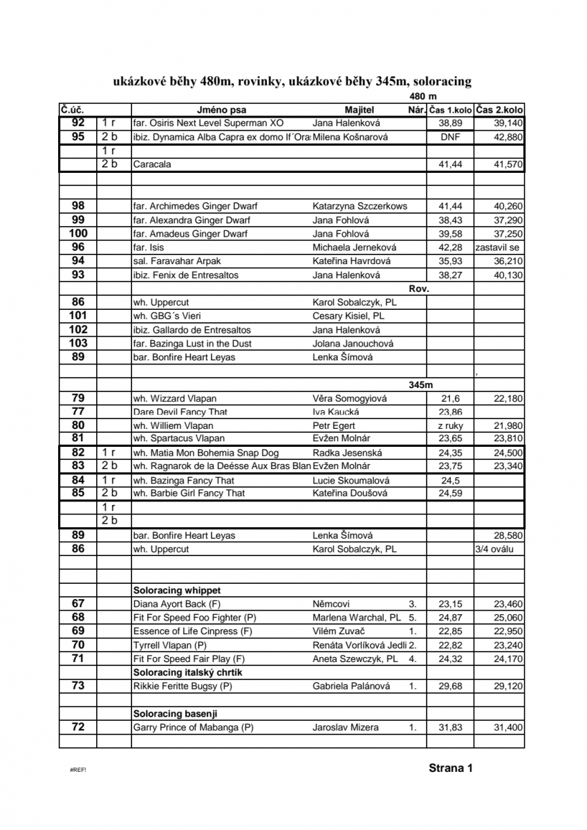 Dostihy chrtů – rozpisy běhů, časy rozběhů a finálových běhů