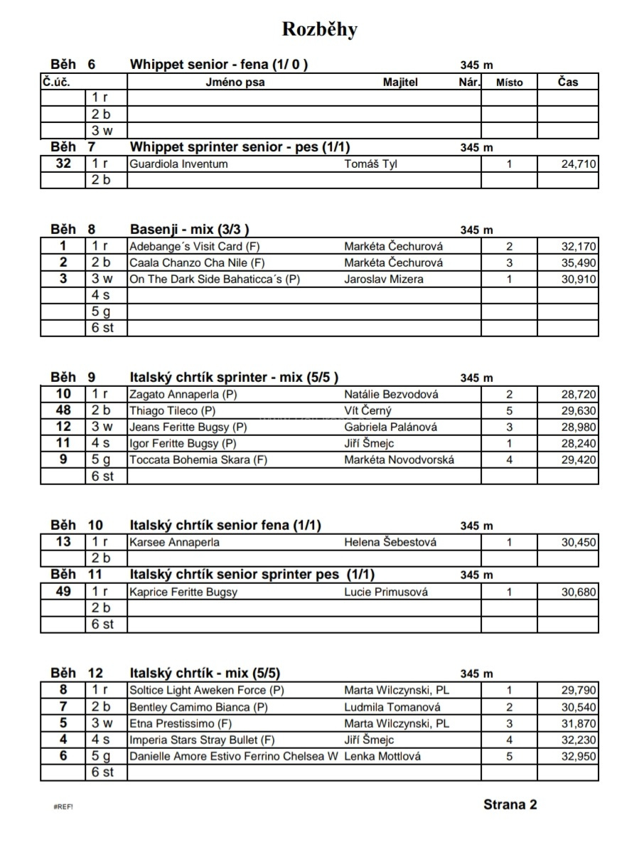 Dostihy chrtů – rozpisy běhů, časy rozběhů a finálových běhů